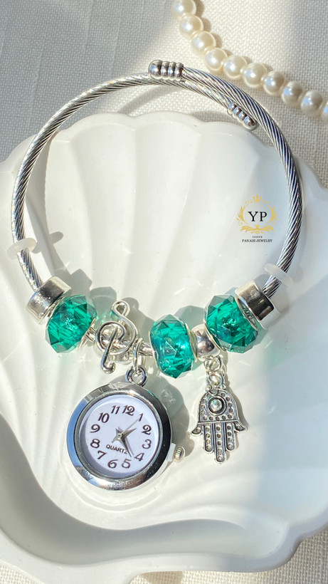 پاندورا ساعتی نقرهای چارم فیروزهای