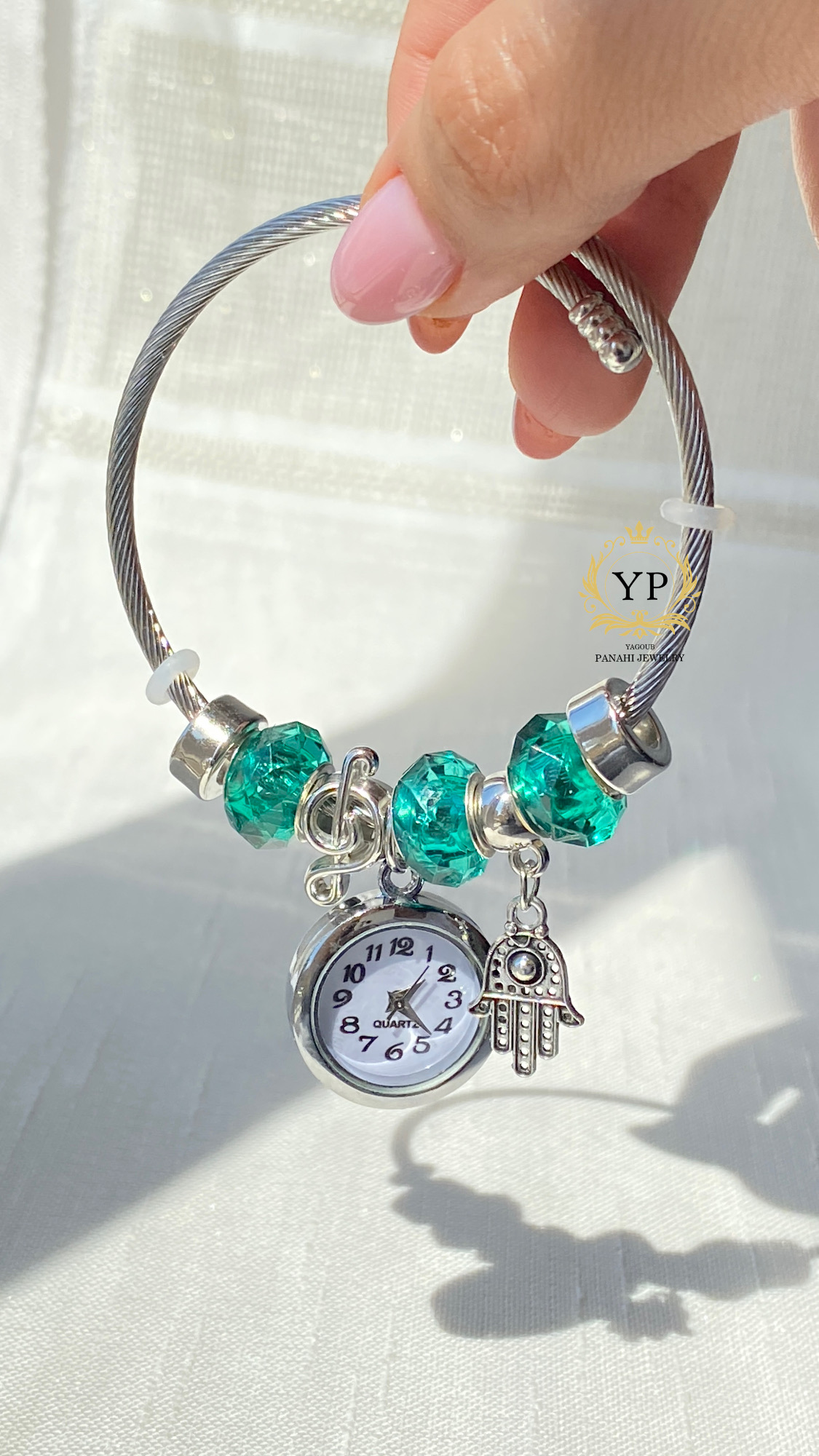پاندورا ساعتی نقرهای چارم فیروزهای