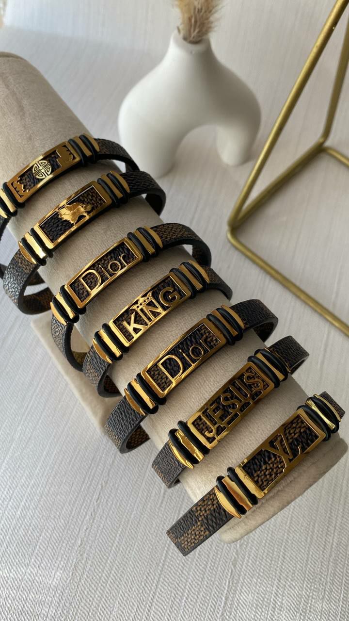 دستبند چرم پسرانه پلاک دار