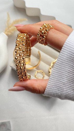 ست بنگل و انگشتر النگوی بازشو و انگشتر قفل زرگری